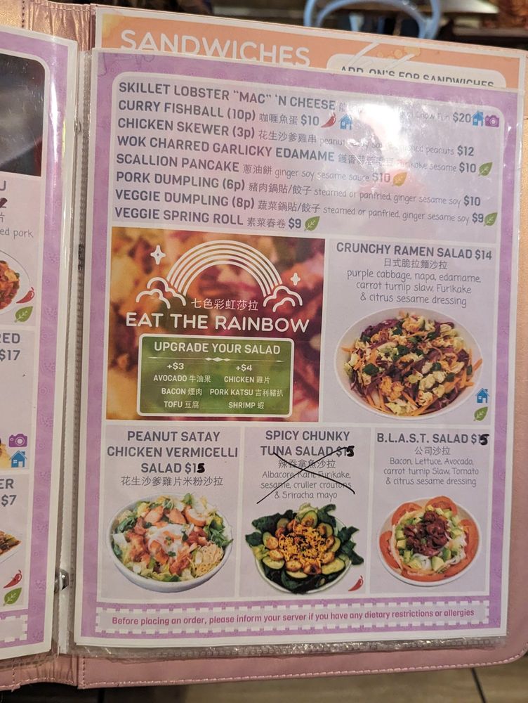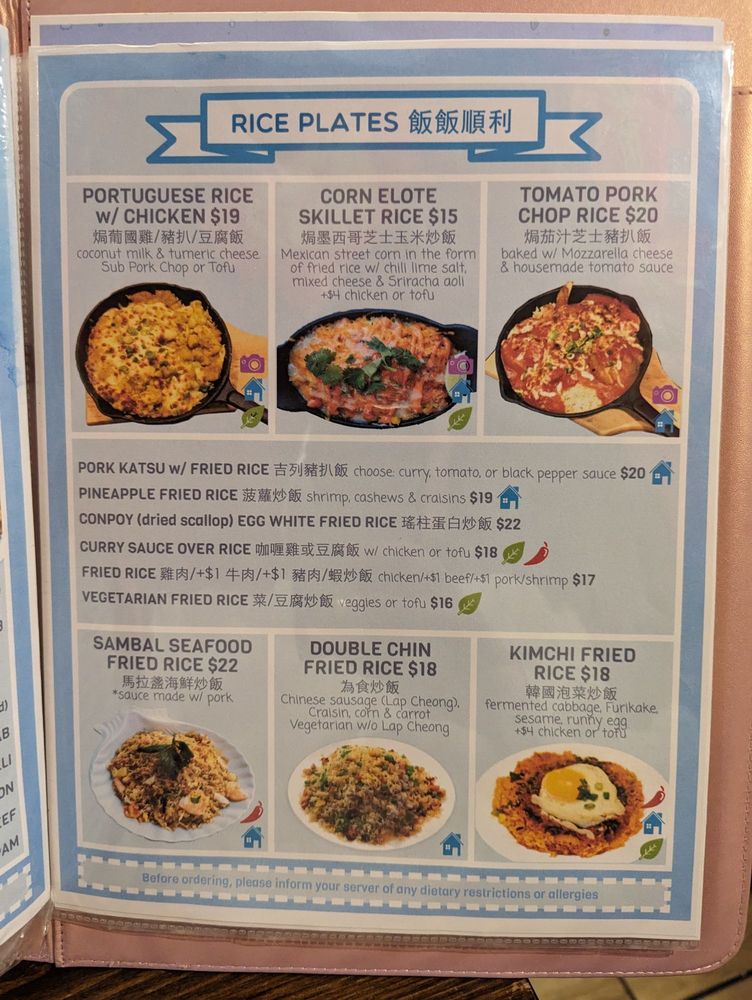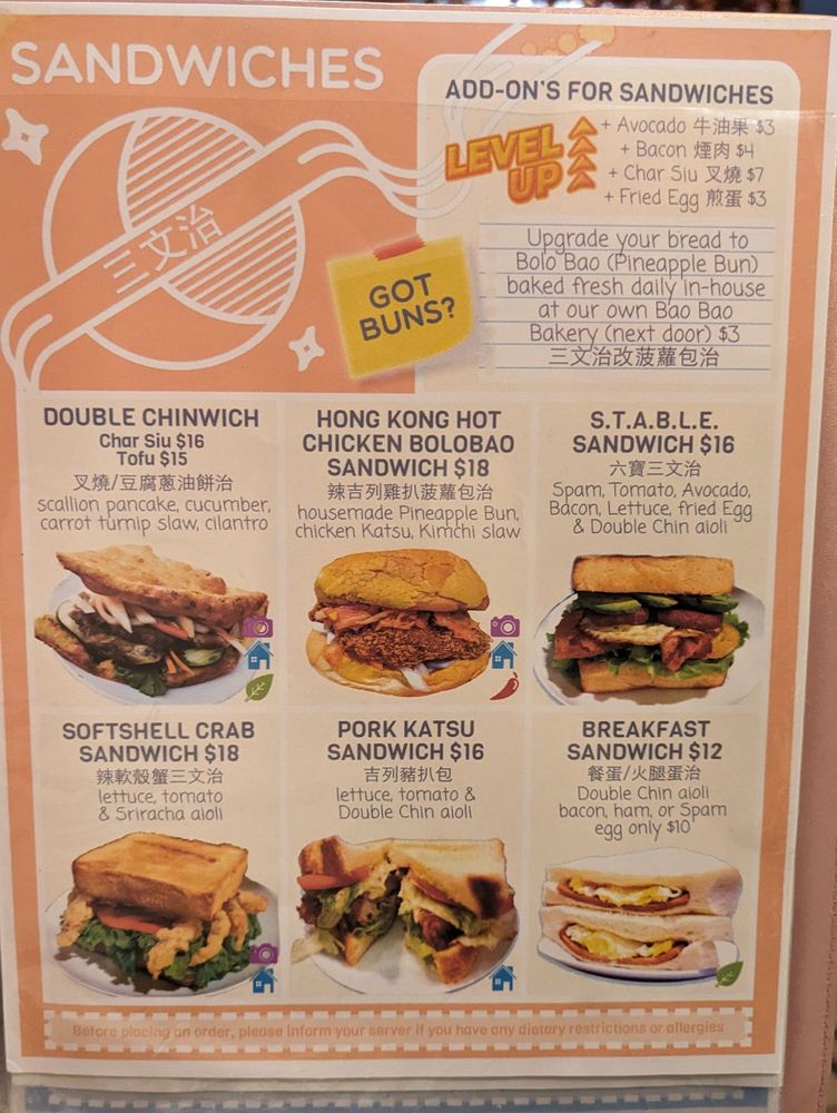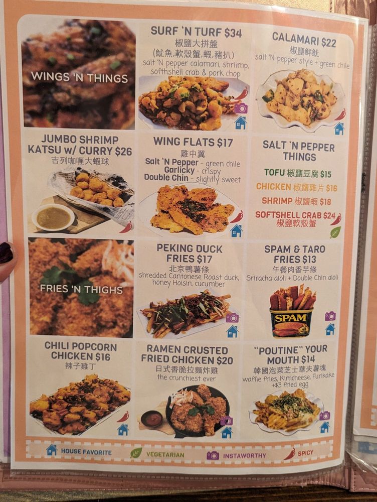 Double Chin offers a diverse Asian fusion menu with a focus on Chinese cuisine. Located in Boston, MA, the restaurant provides a range of options for diners, including vegan and vegetarian choices. With a casual and trendy atmosphere, Double Chin is suitable for various occasions, from brunch to dessert. Their Mid-Autumn Festival specials, like Mini Red Bean Mooncake and Small Lotus Mooncake, showcase traditional flavors. Noteworthy dishes include Golden Lobster Fried Rice, Peking Duck Fries, and Curry Fried Rice with Chicken. The Savory Brunch menu features unique items such as Crab Me Benny One More Time and Katsu Bo lo Baowich. Double Chin offers a memorable dining experience with a blend of traditional and innovative dishes that cater to a wide range of preferences.
